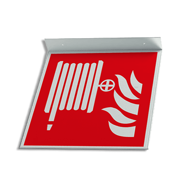 Aluminium haaks muurbord, stelling of plafondbord met de officiële pictogrammen / symbolen conform de geldende NEN norm 'NEN-EN-ISO 7010'