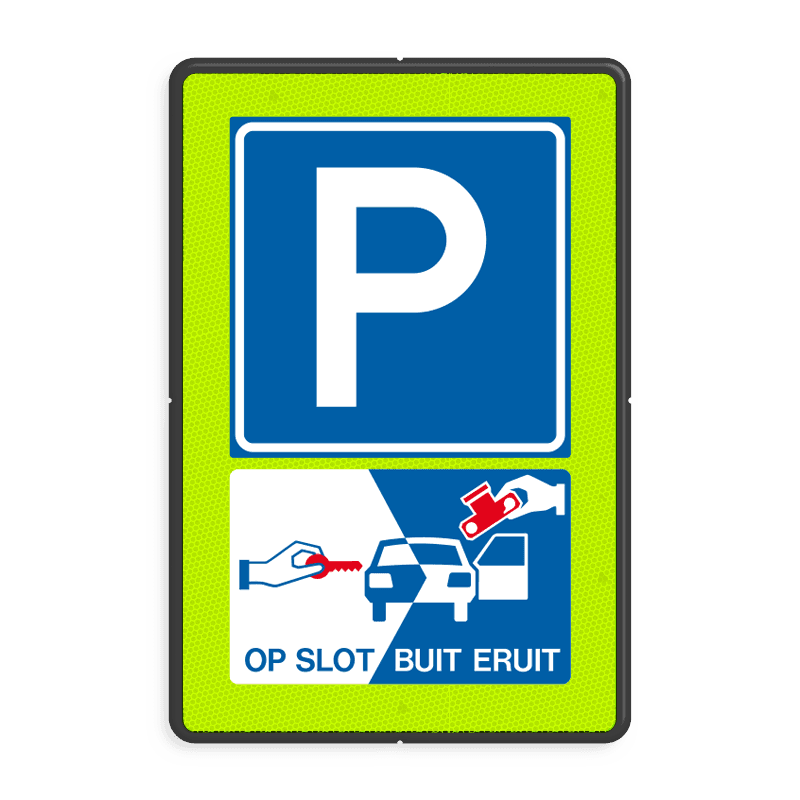 Verkeersbord RVV E04 - L207 - parkeergelegenheid en Op slot Buit eruit!