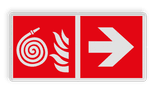 Brand bord met pictogram en pijl Niet aangesloten brandslang