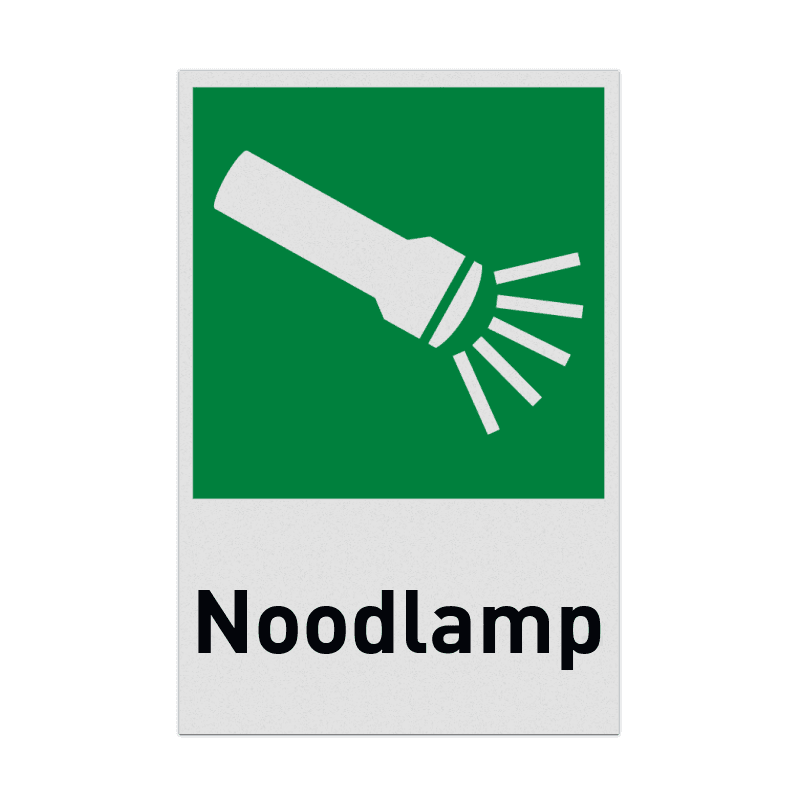 Reddingsmiddelenbord met pictogram en tekst Noodlamp