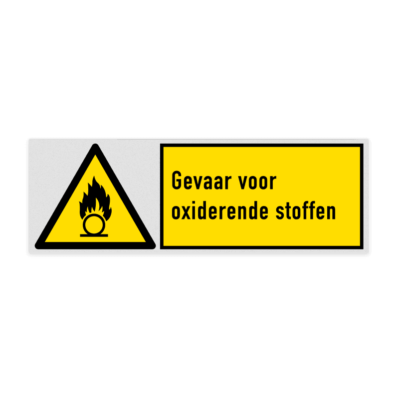 Veiligheidsbord met pictogram en tekst Gevaar voor oxiderende stoffen