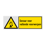 Veiligheidsbord met pictogram en tekst Gevaar voor vallende voorwerpen