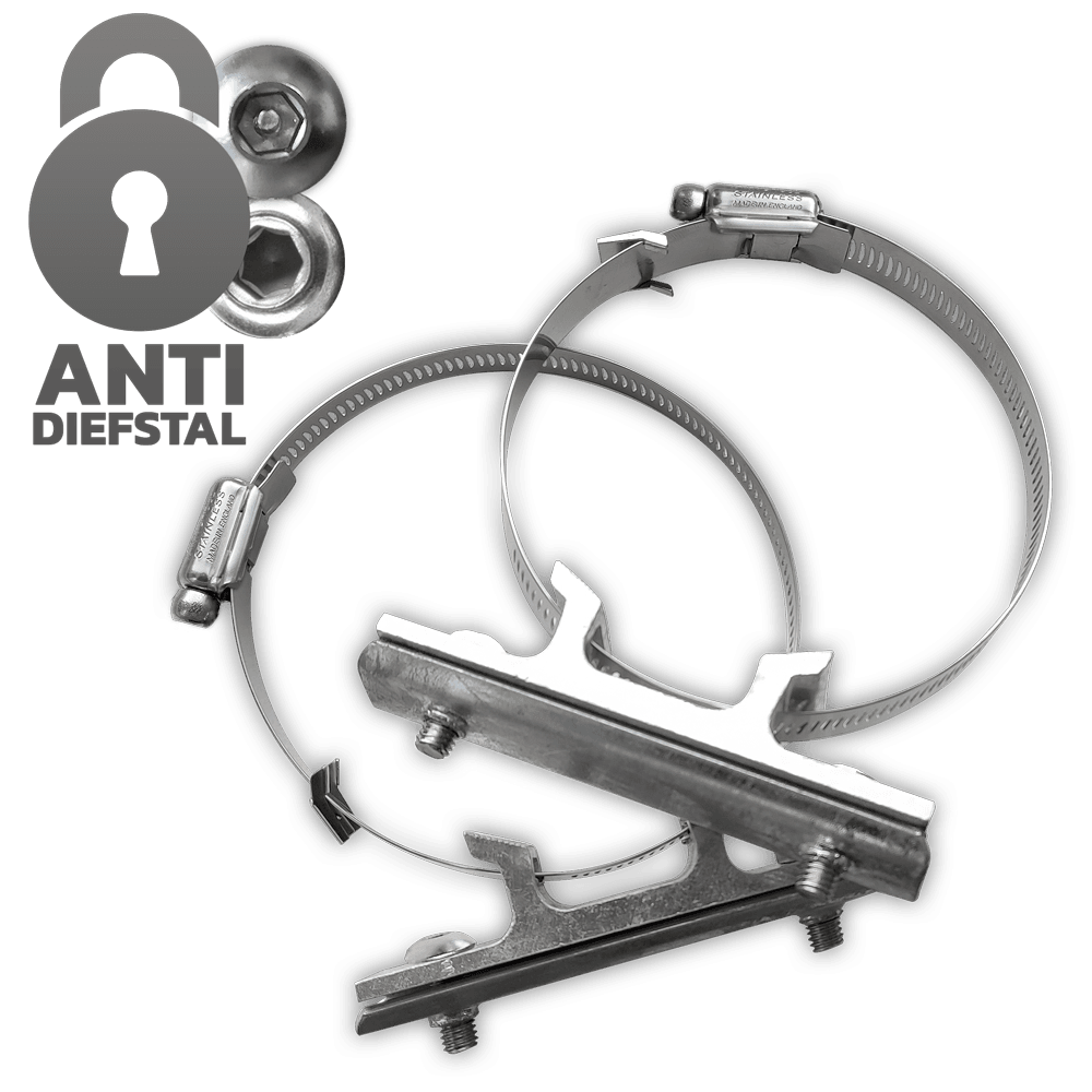 Anti-diefstal beugelset met RVS tam-torque klembanden.