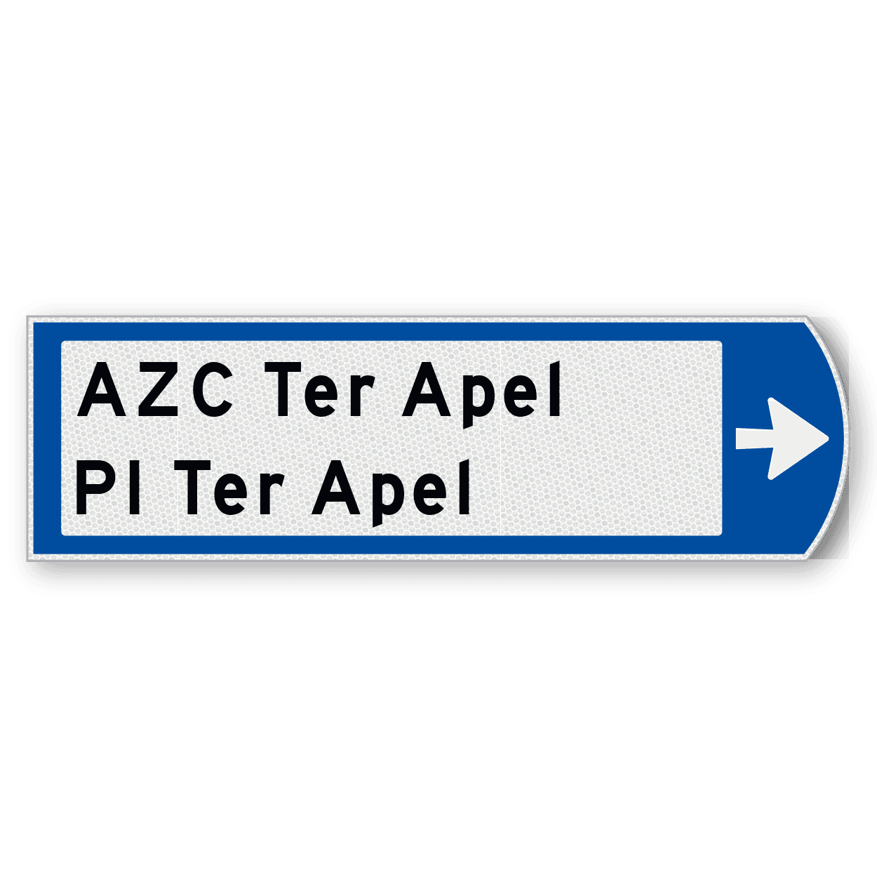 Handwegwijzer klein rechtswijzend met 2 regelige zwarte tekst 990x295mm