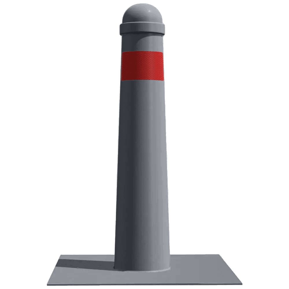 Trottoirpaal (MA66a) conisch staal met voetplaat en reflectieband