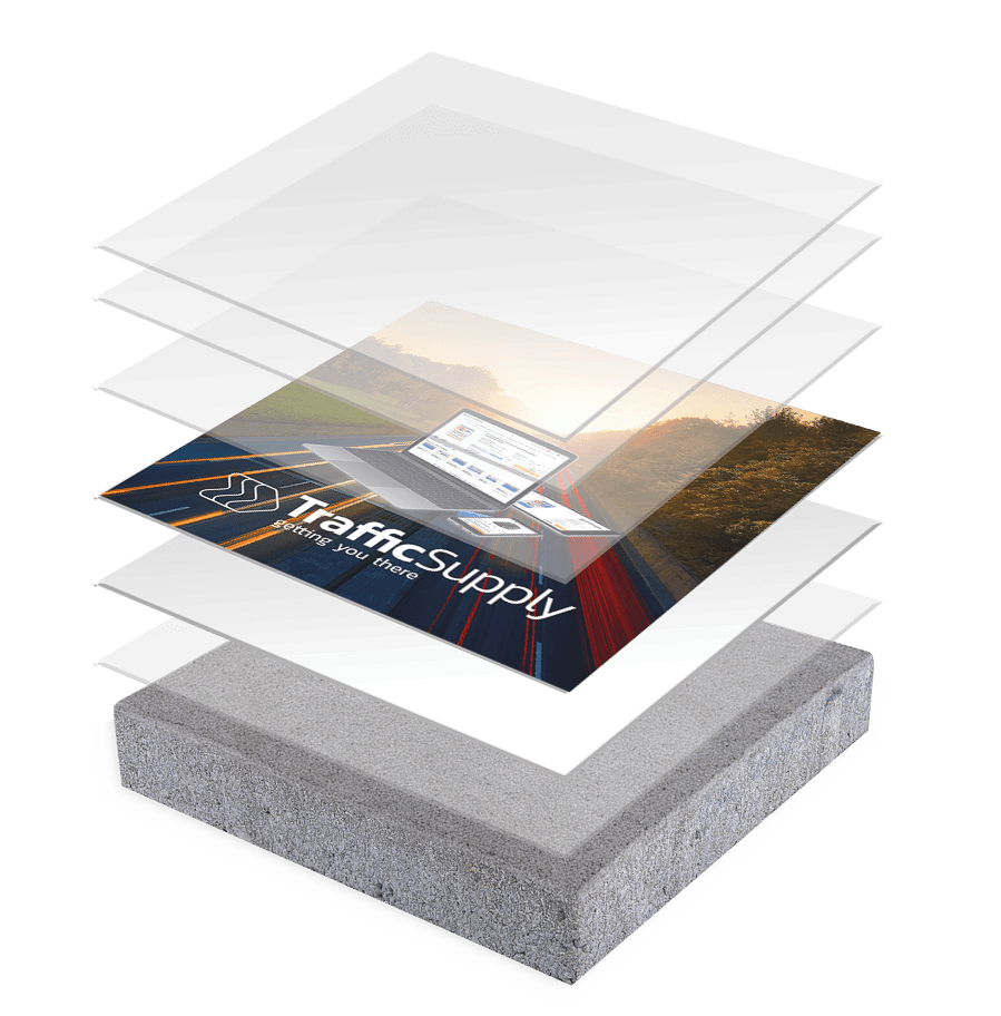 Deze stoeptegel is voorzien van een keramische opdruk en heeft daardoor een onbekend lange levensduur. De symbooltegel heeft een anti-slip laag (geschikt voor gebruik in de openbare ruimte) is bestand tegen verkleuring door zonlicht en heeft een facetrand.