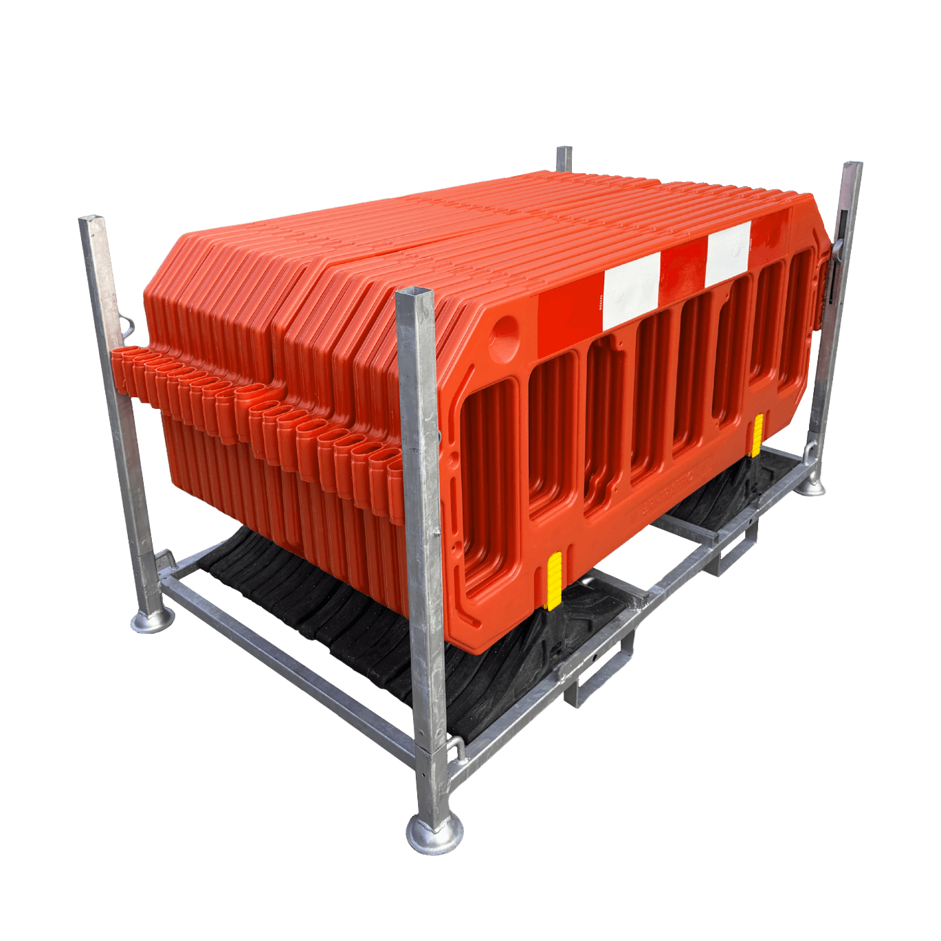 Deze complete set van 20 kunststof afzethekken, inclusief een stevig stalen opslag- en transportrek, is de ideale oplossing voor het snel en efficiënt afzetten van gebieden bij evenementen, bouwplaatsen of wegwerkzaamheden. De hekken zijn vervaardigd uit hoogwaardig HDPE kunststof en voorzien van rood-witte reflecterende stroken voor optimale zichtbaarheid, zelfs bij weinig licht. Dankzij de draaibare rubberen voeten zijn de hekken eenvoudig te plaatsen, op te bergen en te vervoeren.