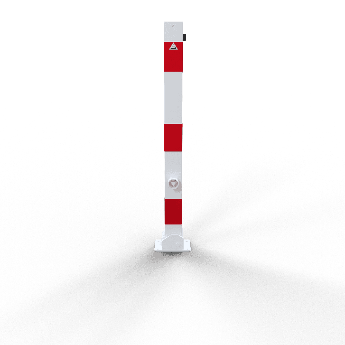 Parkeerpaal staal 70x70mm wit/rood - neerklapbaar met slot