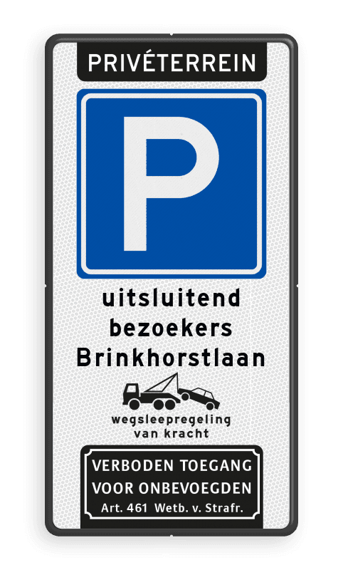 Parkeerbord Privéterrein E04 met tekst en wegsleepregeling