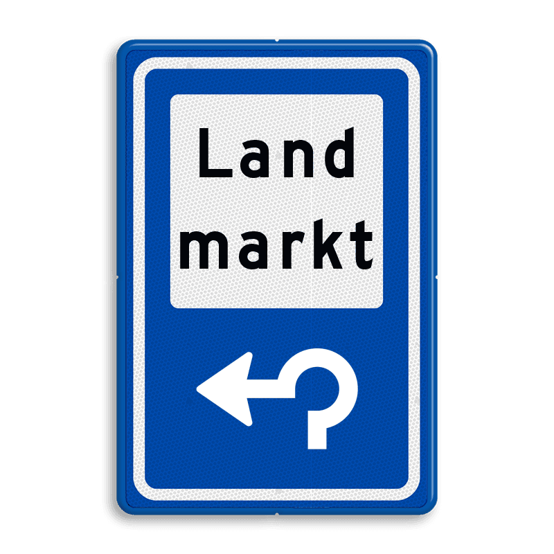 Verkeersbord RVV BW101 met tekst Landmarkt en rotondepijl