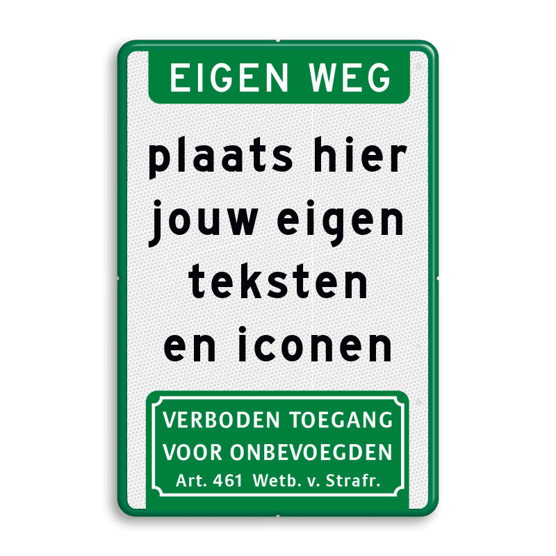 Bord eigen weg groen/wit - eigen tekst en pictogram - reflecterend