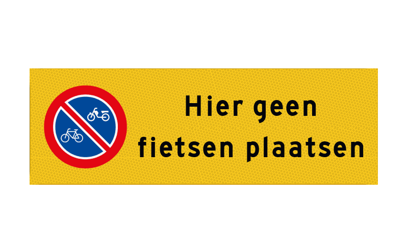 Bord vlak 300x100mm geen fietsen plaatsen - reflecterend