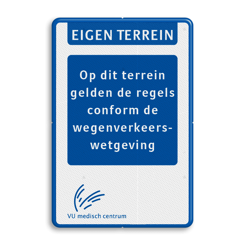 Informatiebord voor EIGEN TERREIN met tekst en logo