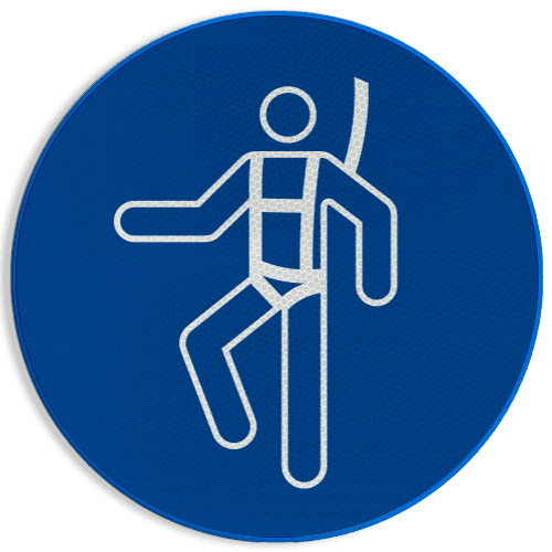 Veiligheidspictogram M018 - Veiligheidsharnas verplicht - reflecterend