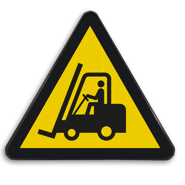 Officieel veiligheidspictogram gevaar voor vorkheftrucks en andere industriële voertuigen conform de geldende NEN norm ‘NEN-EN-ISO 7010’. Bestelbaar als sticker, (vlak) bord of magnetisch.