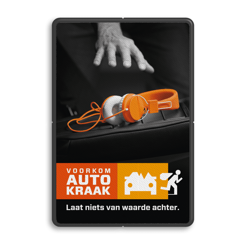 Campagnebord reflecterend - VOORKOM AUTOKRAAK - 003 Koptelefoon