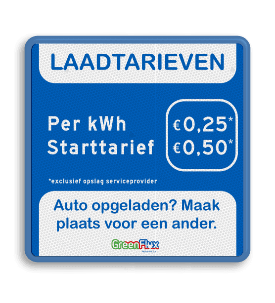 Laadtarievenbord blauw/wit/zwart - vol reflecterend - Greenflux
