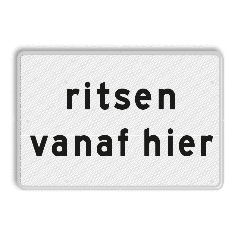 Verkeersbord RVV OB726 - Onderbord - ritsen vanaf hier