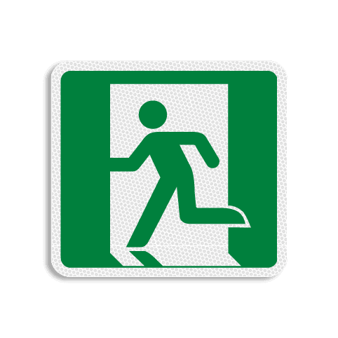 Vlak terreinbord 119x109mm groen/wit - Pictogram Nooduitgang links