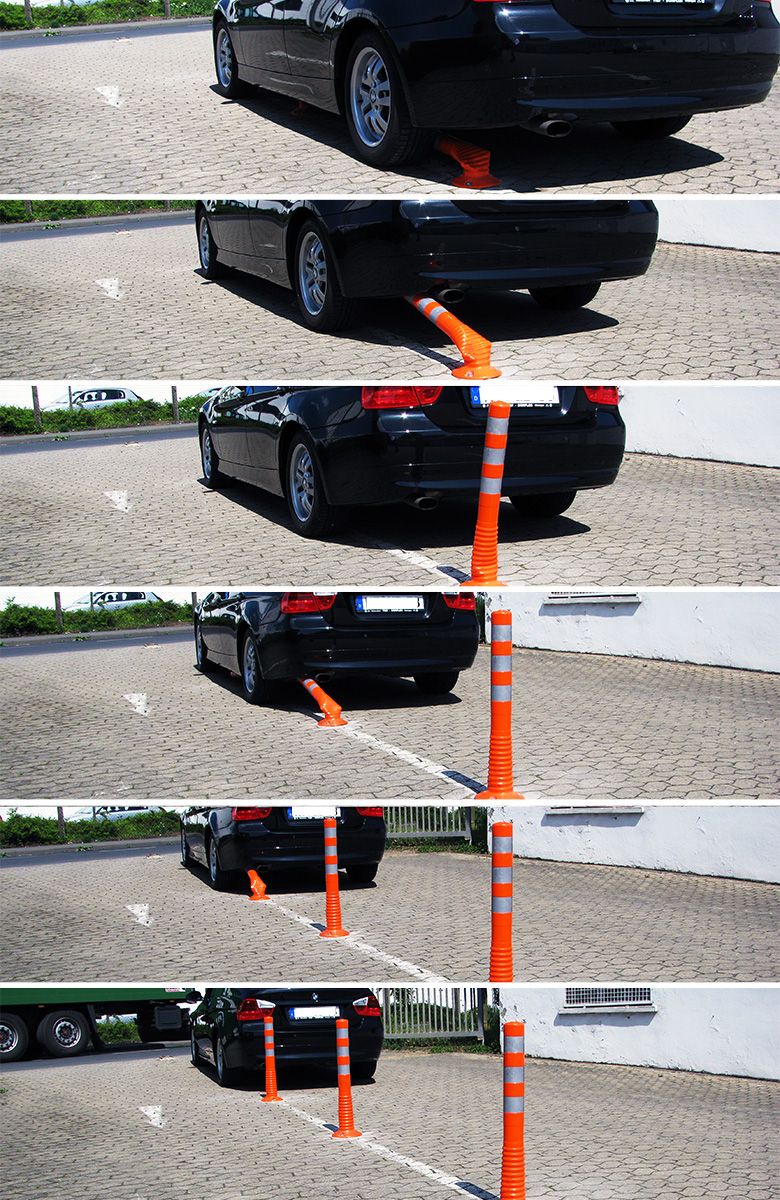 • na overrijding veert de flexibele paal vanzelf weer terug