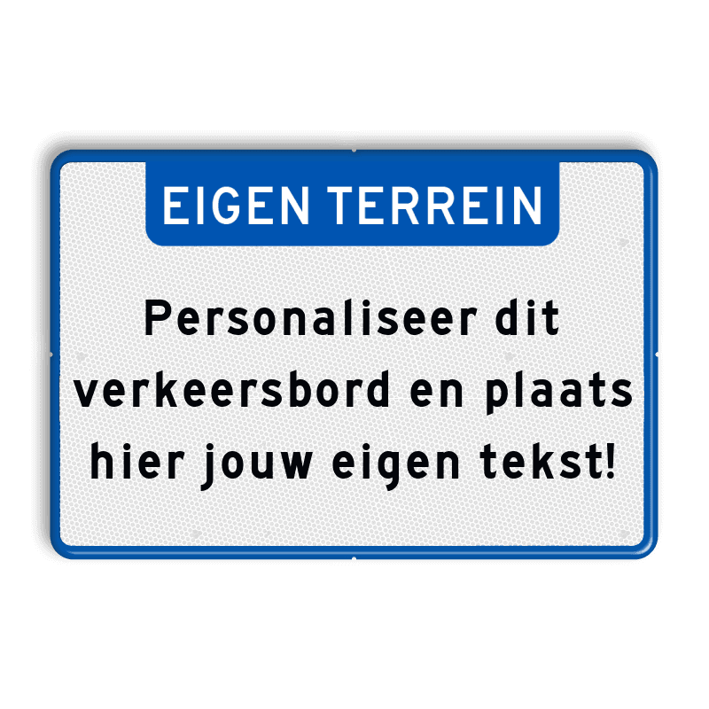 Verkeersbord met eigen tekst - blauw/wit - reflecterend