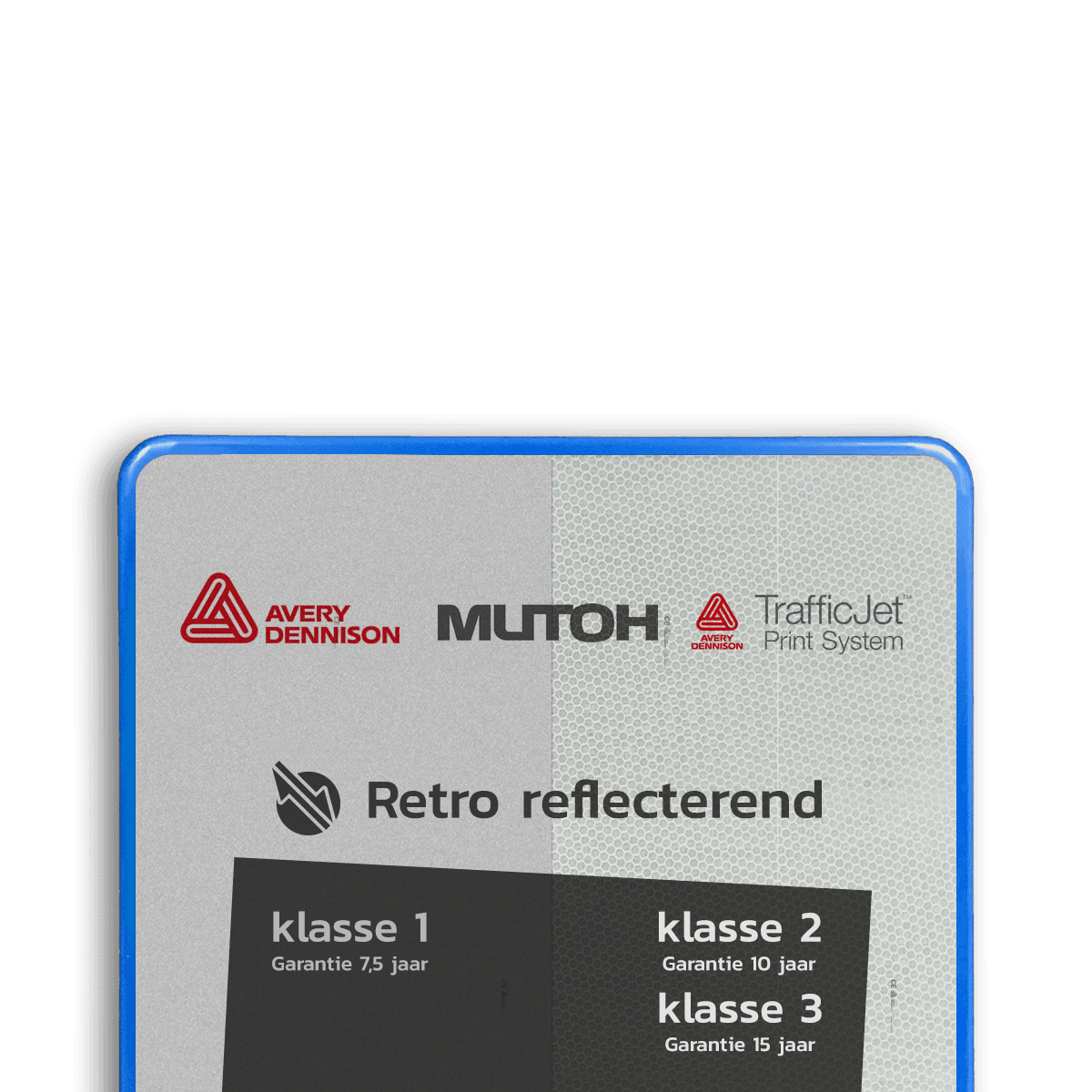 Al onze borden worden - tenzij anders aangegeven - voorzien van reflecterende folie. Deze speciale folie weerkaatst licht en is dankzij een zeer hoog helderheidsniveau altijd goed zichtbaar. Hierdoor zijn (verkeers)borden ook in het donker goed te lezen. Dankzij deze folie komt je boodschap in alle omstandigheden goed over.