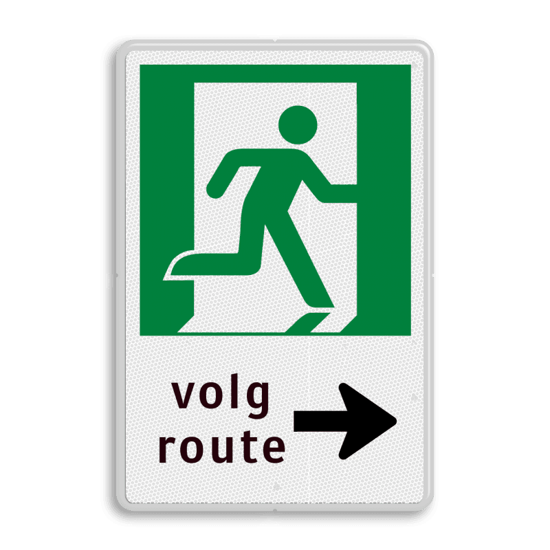 Vluchtroute bord - Nooduitgang Volg route met pijl