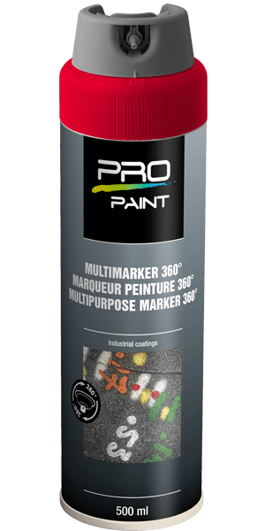 Pro Paint Multimarker fluor rood is de perfecte semi-tijdelijke markeerspray. Deze fluorescerende markeringsspray is 8 tot 12 maanden zichtbaar. Daardoor is deze markeerspray bij uitstek geschikt voor het makeren en aftekenen van leidingwerk. Door de unieke 360 graden sproeikop kun je met deze markeringsspray ook eenvoudig teksten of symbolen 'schrijven'. Deze rood fluorescerende spray is op acrylaathars.