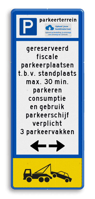 Parkeerbord parkeerterrein met tekst, logo, pijl en wegsleepregeling