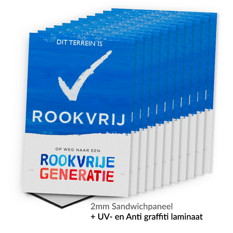 AluPanel 2mm + full colour print 'dit terrein is rookvrij' in huisstijl van Rookvrije Generatie.