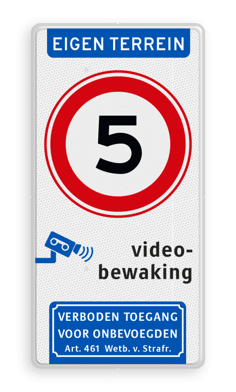 Verkeersbord A01-05 met videobewaking en Wetboek