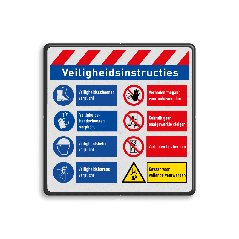 Aluminium bord met dubbel omgezette rand met print van tekst / pictogrammen in reflectieklasse 1 (incl. anti-graffiti laminaat).