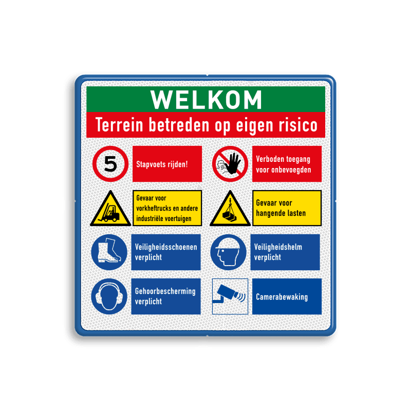 Veiligheidsbord met dubbel omgezette rand met print van tekst / pictogrammen in reflectieklasse 3 (incl. anti-graffiti laminaat).