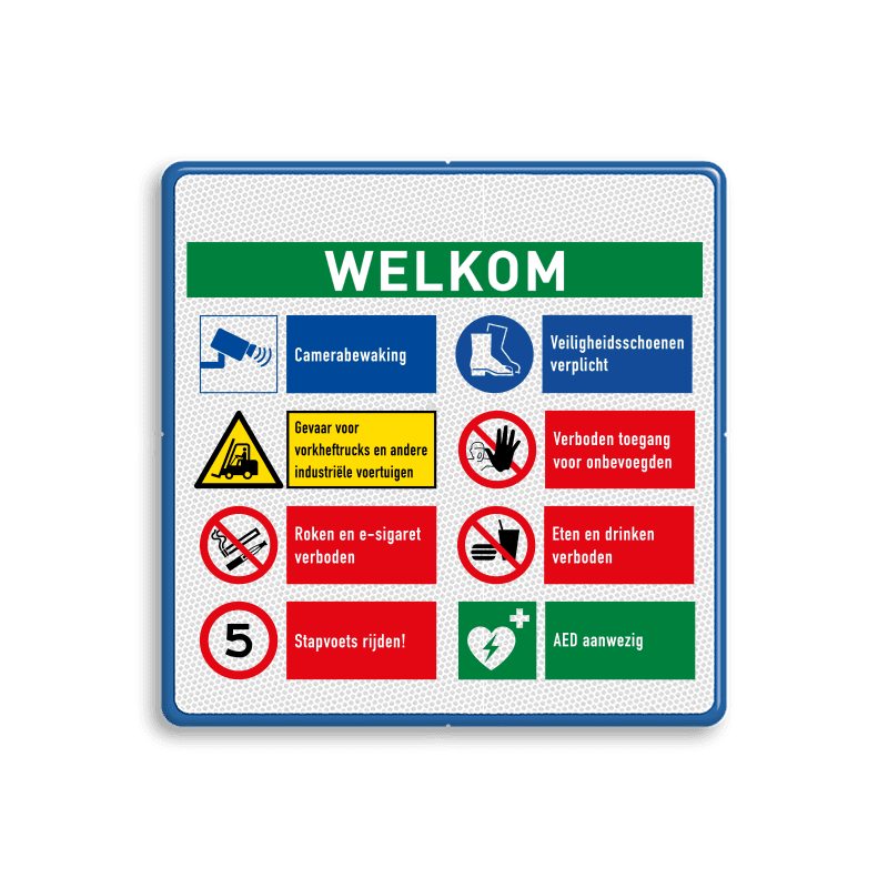 Aluminium bord met dubbel omgezette rand met print van tekst / pictogrammen in reflectieklasse 3 (incl. anti-graffiti laminaat).